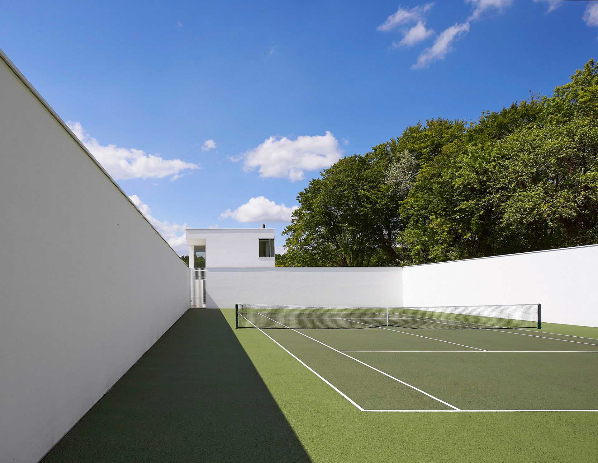 The design for the replacement house in Surrey restored the structure of the estate, reinstating a central focus on the site of the original mansion, which was destroyed by fire in 1953.