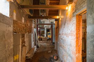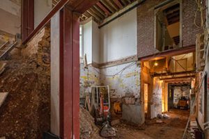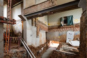 All remaining redundant pipework and services within basement were stripped out before the team installed universal beams throughout the ground floor area. We carried out a reduced level dig externally at the new plant room location down to the top of the existing foundations, externally installing new steel beams. On completion the next stage was to break through externally into the existing basement area. Elements of the building had to be preserved and were therefore carefully removed and saved in a safe location. The existing floor of the basement was then taken up, followed by the careful removal of internal walls. This led on to a reduce level dig, excavating the underside of the existing foundations. All arising’s were removed from the basement and stockpiled as works proceed.